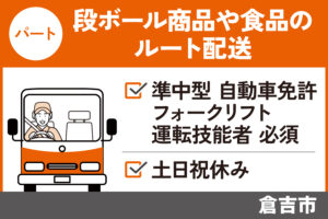 【倉吉市】2t車を使用したルート配送/パート*土日祝休み! J-125